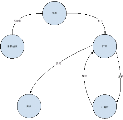 - 首先創(chuàng)建解析器對象,此時對象為未初始化狀態(tài)。經(jīng)過Xerces XML4C子系統(tǒng)的初始化,對象進(jìn)入可用狀態(tài)。