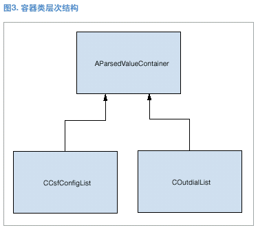 AparsedValueContainer類沒有數(shù)據(jù)和方法。它僅用于配合收集程序類的運行。(見圖3。)抽象收集程序類純虛擬功能CollectValues()的第二個影響因素是容器,當(dāng)在具體收集程序類實施中定義了容器時,必須使用通用的基礎(chǔ)類。所以在真正使用容器之前,必須在每個具體的收集程序類中進(jìn)行向下類型轉(zhuǎn)換。