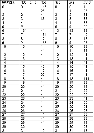 本節(jié)詳細描述了10個預(yù)配置的接受拆線原因到內(nèi)部標(biāo)識的映射表。當(dāng)前表0-5和7都是相同的。表6、8、9和10不同。