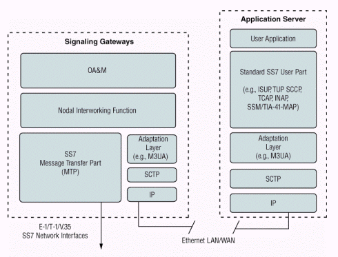 SCTP和應(yīng)用層軟件,如MTP3用戶適配層 (M3UA),以及標(biāo)準(zhǔn)的七號(hào)信令用戶端軟件,如ISUP、移動(dòng)應(yīng)用部分 (MAP)、或者智能網(wǎng)應(yīng)用部分