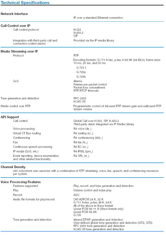 H.323 with H.450.2補充規(guī)定,SIP協(xié)議,Global call 支持。 |