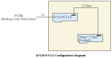 來自12個(gè)環(huán)路電話線的信號(hào)首先通過電話線路接口連接到D/120JCT-LS板卡上,該接口提供瞬變保護(hù)和電磁干擾(EMI)刪除(參見子板塊圖)。這些電話線路接口使用可靠的晶體摘掛機(jī)開關(guān)(無機(jī)械接觸)和FCC-Part