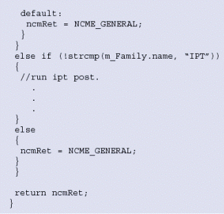 。。當(dāng)系統(tǒng)檢測到一個外圍設(shè)備板卡時,建議您在該設(shè)備上執(zhí)行POST以保證硬件功能良好。系統(tǒng)版提供了POST工具,可以基于硬件類型和它屬于的產(chǎn)品系列被單獨執(zhí)行。圖6例證了這個功能是如何完成的。代碼snippet是系統(tǒng)版應(yīng)用實例pfmanager的一部分。