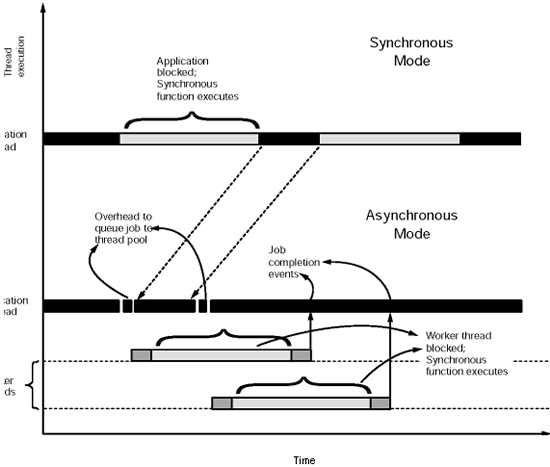 異步方式調用時,返回碼僅表示這項工作已被成功的傳遞給工作線程。實際的錯誤返回碼將在同步函數(shù)完成時由工作線程發(fā)送到應用程序的事件循環(huán)里。