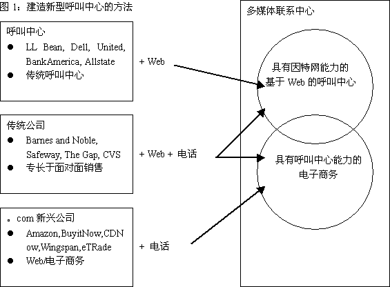 所有的公司都迫切希望找到一種途徑,使自己擁有“具有因特網(wǎng)能力的、web集成的呼叫中心”或“具有呼叫中心能力的電子商務(wù)網(wǎng)站”。圖1所示為實施方法的一個實例。但是,不管你如何稱呼它,如何達到目標(biāo),你都會面臨處理多媒體聯(lián)系的挑戰(zhàn)。多媒體聯(lián)系中心包括通過電話簽定合同和處理來自web的合同,可能是通過電子郵件,文本交談,電話呼叫,或通過web的語音呼叫。并且,大多數(shù)時候是由同一組人處理多種媒體服務(wù)。
