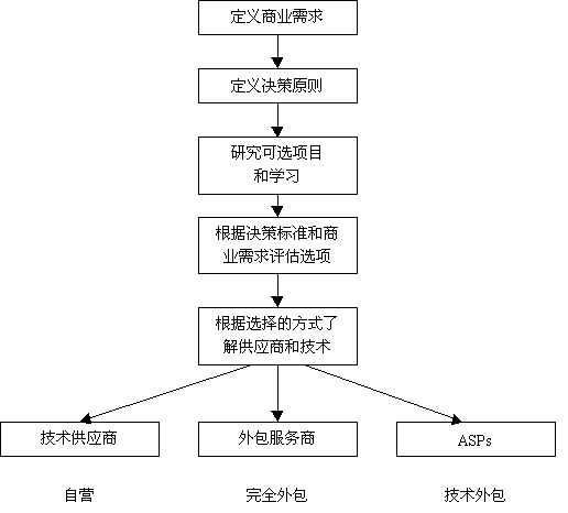 在確定規(guī)模和電子商務(wù)的影響之前,應(yīng)該先花費些時間分析一下環(huán)境條件。圖2提供了一個框架結(jié)構(gòu),可用于確定實現(xiàn)電子商務(wù)支持最好的方式。記住,這只是確定你希望采取的步驟的第一步,下一步將選擇一個銷售商或供應(yīng)商。